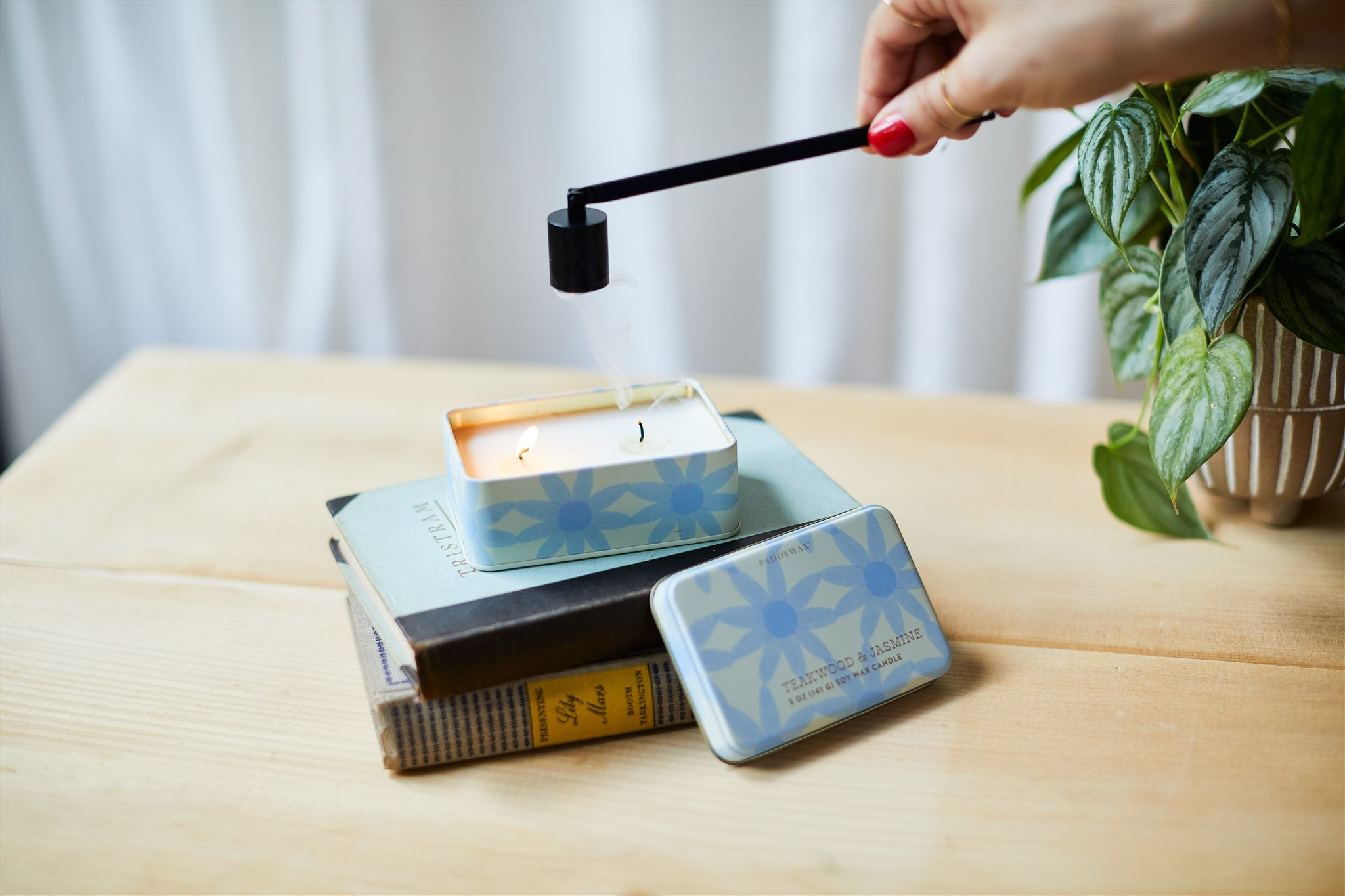 Wick trimming helps your candle have a cleaner, brighter, and longer burn. This practice helps keep the flame in control and prevents smoke stains from forming on the vessel.
